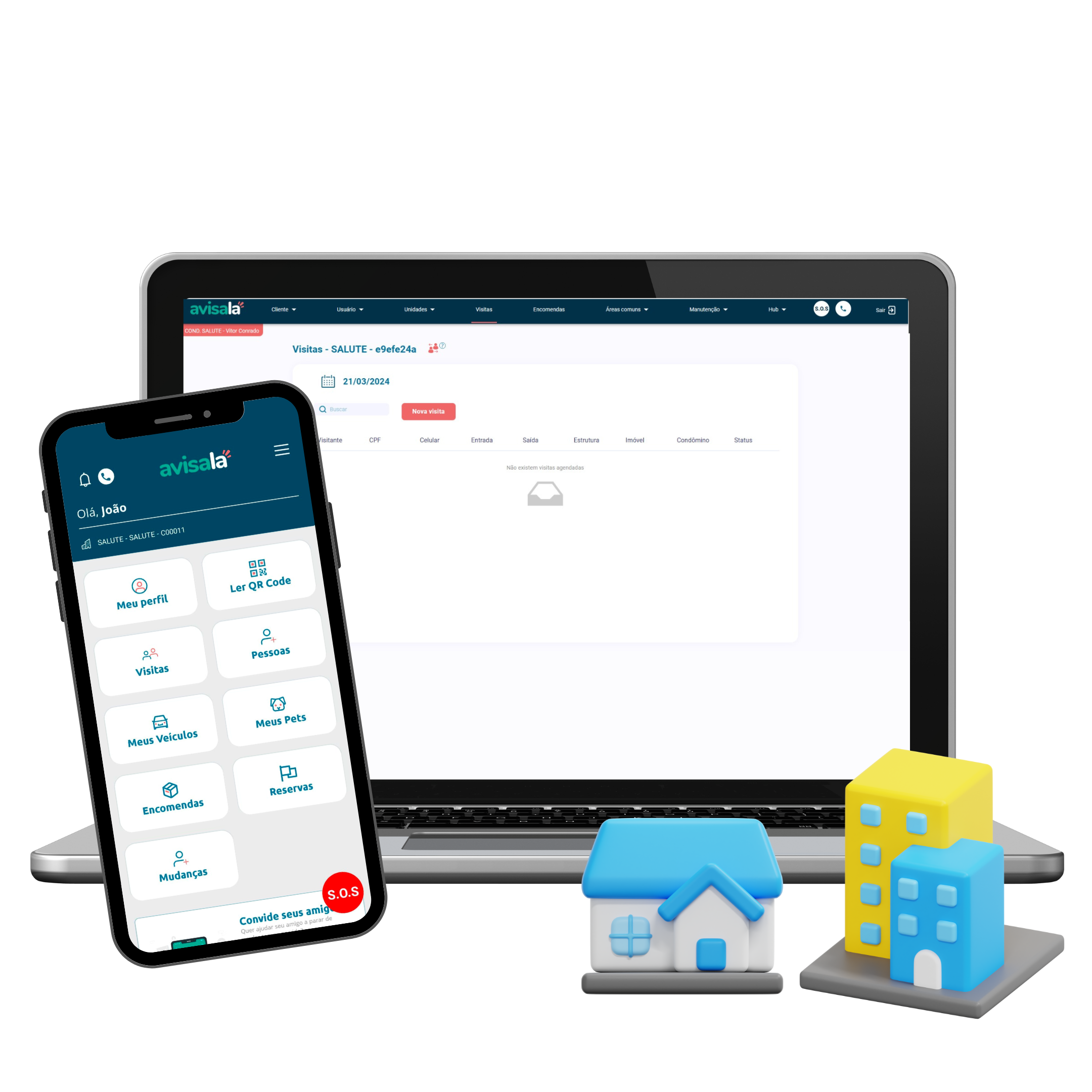 Permitam o acesso de visitantes por QR Code, monitorem entradas e saídas na sua unidade, gerenciem entregas e retiradas de encomendas, reservem áreas comuns, comuniquem-se com a portaria via interfonia, enviem ocorrências com fotos pelo SOS e solicitem ajuda facilmente através do botão de pânico.